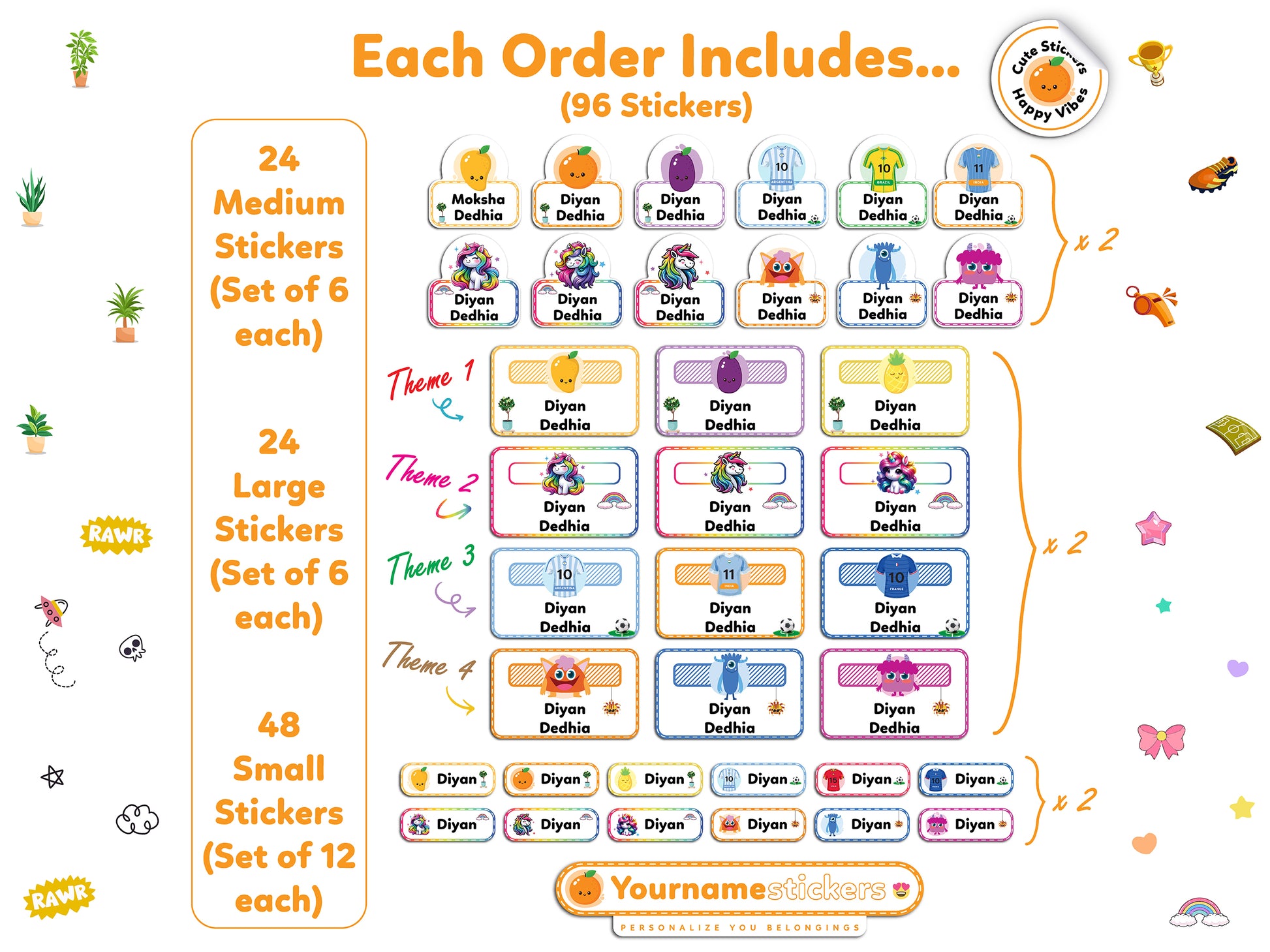 🎨 Customize with Fun themes : Choose from 12 unique themes to add a touch of personalization to make your name tag labels stand out. All sticker packs comes in three sizes Small, Medium & Large. The eye-catching design ensures your belongings are easily recognizable and adds a personal touch to your items.