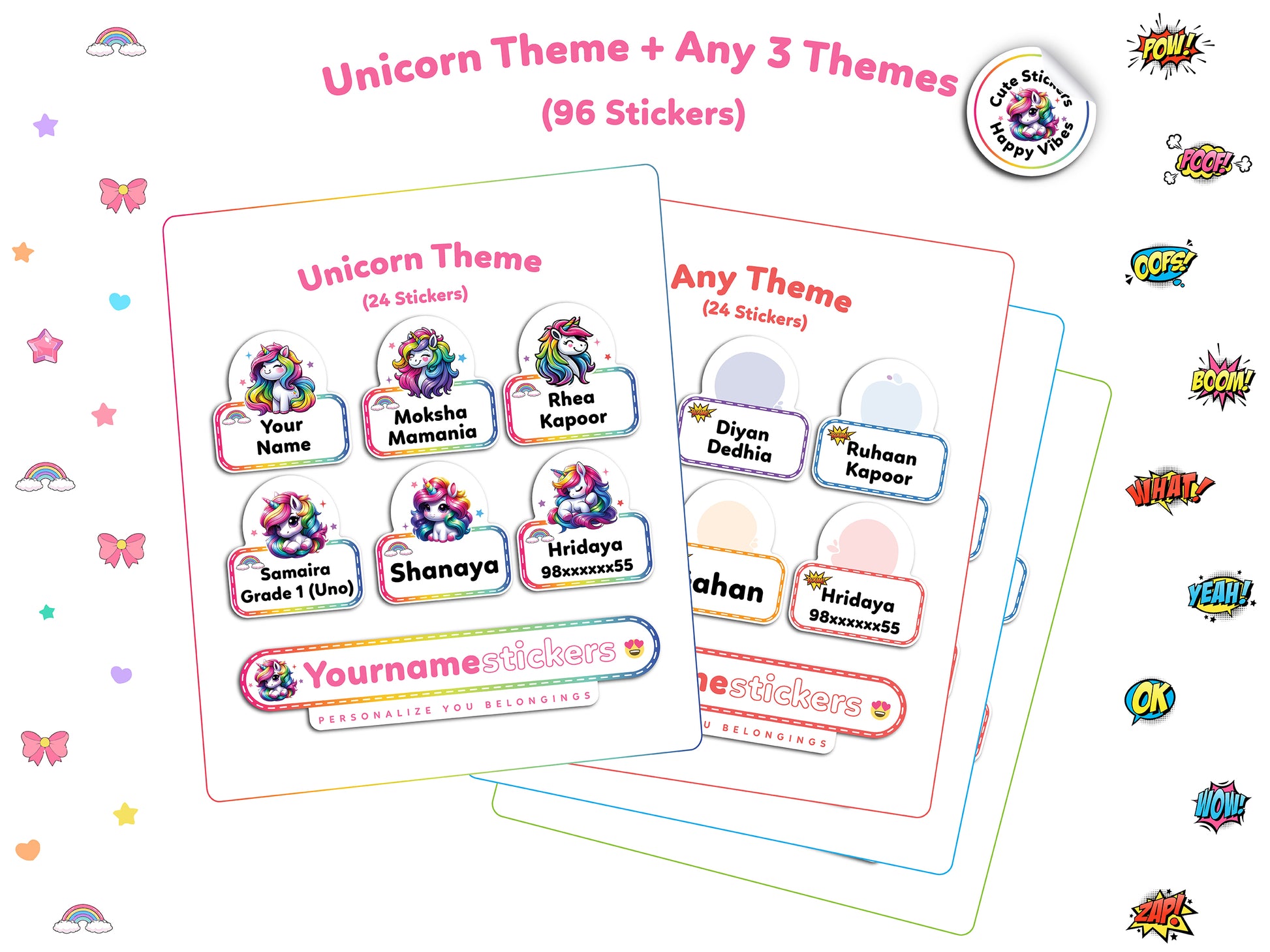 🏷️ Personalize with Yourname stickers: 96 Customizable stickers perfect for labeling your child's belongings like books, toys, toothbrush, and school stationery. Keep everything organized with our unique personalized nametag label stickers.